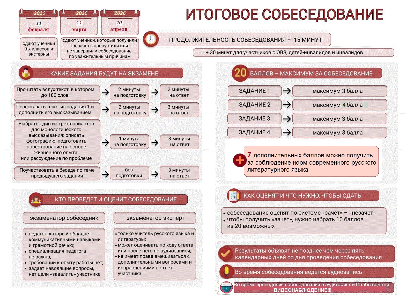 Расписание проведения итогового собеседования по русскому языку в 2025/26 учебном году